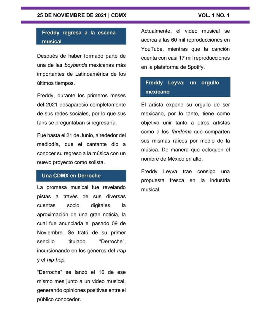 Freddy Leyva obtiene su primera portada como solista en la revista digital Zero Magazine MX el 20 de diciembre de 2021.